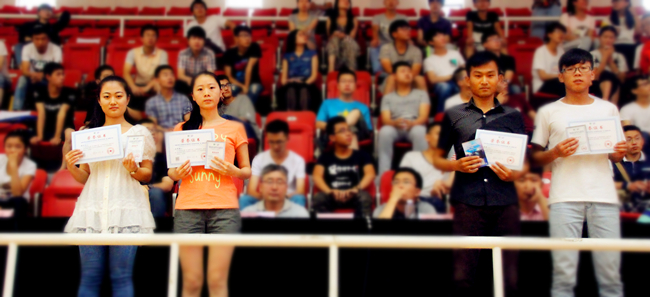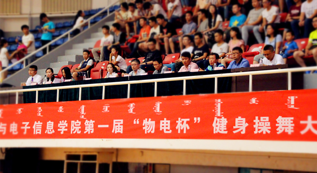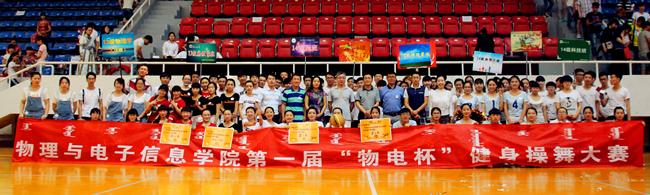 本网快讯 激情盛夏,似火青春。2015年6月28日下午3时,我院在体育学院篮球馆胜利举办首届“物电杯”健身操舞大赛及“我宿我们行”宿舍文化月和“麦克斯韦的光圈”摄影大赛颁奖仪式,再一次奏响了我院文化育人的新篇章。出席活动的嘉宾有院长特古斯教授、党总支副书记何小龙老师、各专业评委、赞助商代表及各班班主任,团总支书记萨其尔老师主持本次活动。