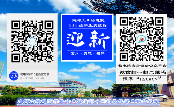 在此,衷心祝贺你们成为yl6776永利集团这个大家庭中的一员,现将“物电院2015级迎新官方群”和“物电院微信公众平台”二维码及账号公布如下,请扫描二维码进行关注以便交流答疑,衷心期待你的热情加入!
