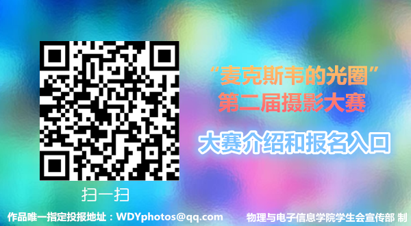 详情内容及宣传单欢迎点击下载附件:“麦克斯韦的光圈”摄影大赛宣传单附件下载.doc