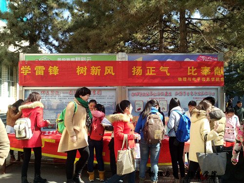 本网快讯 2015年3月10日中午,我院继续举办雷锋日系列活动。这次我院来到了食堂门口,向广大师生发出倡议“学雷锋 树新风 扬正气 比奉献”。伴着清新悦耳的音乐及火红的标语,本次活动吸引了众多前来食堂就餐同学的目光,学生会工作人员热情的递上签字笔,同学们在横幅上纷纷留下自己的名字。随着活动的进行,签名现场人潮涌动,同学们积极投入到活动当中,用心感受着身边的雷锋精神。期间,主席们也到达现场,指出活动中可能出现的问题以确保活动顺利进行。此次雷锋日系列活动的成功举办,使全院同学认识到了学习雷锋精神的重要性同时也扩大了我院雷锋日活动的宣传范围也推动了我院后续雷锋日系列活动的开展。