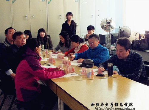 本网讯2014年11月2日上午八点,我院在物电楼407室举办第六届教学技能大赛。我院院长特古斯教授、副院长吉日嘎拉教授、实践创新部主任曹永军教授、李瑞芳老师、那仁格日乐老师、万欣欣老师、孟根巴根老师担任本次大赛评委,参加大赛的选手来自12级物理学(蒙班、汉班)专业的同学们。