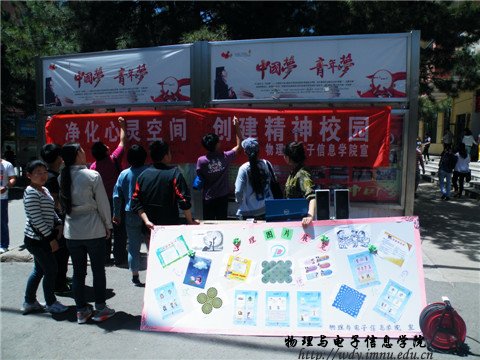 为推进我院学生思想德育工作建设,提高我院学生心理健康教育工作水平,我院于5月27日至5月29日,共三天时间集中举办了心理健康文化月系列活动,分别在食堂门口举办了“心理健康文化活动月”签字活动、物电楼心理健康宣传画展示活动和条幅展览活动。