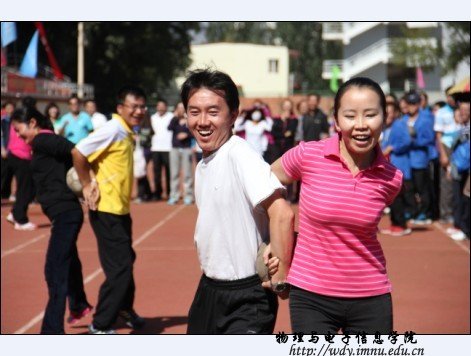 9月29日,我校2013年教职工运动会在赛罕校区西操场隆重举行。开幕式上,我院教师穿着统一的服装,迈着整齐划一的步伐,在经过主席台时,高喊口号:“魅力物电,青春无限。强身健体,发展教育”,赢得了在场人员的阵阵掌声。