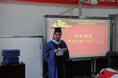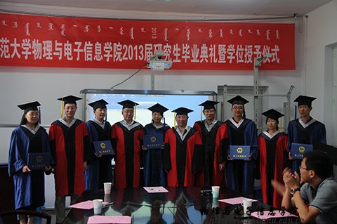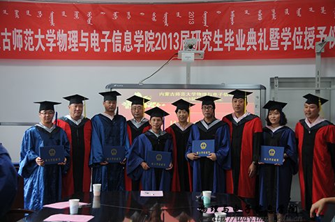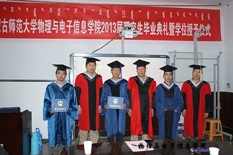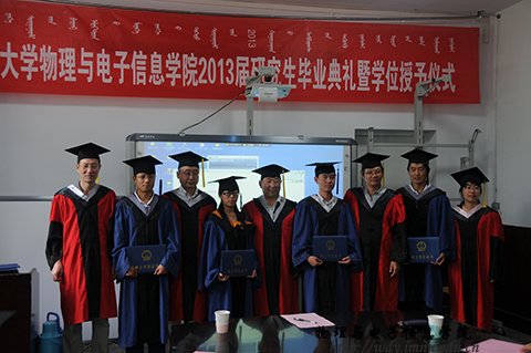 7月3日上午,我院在物理楼会议室隆重召开2013届研究生毕业典礼暨学位授予仪式大会。yl6776永利集团党总支书记阿梅老师、院长特古斯教授、图书馆馆长萨楚尔夫教授、副院长吉日嘎拉教授、党总支副书记何小龙老师参加本次大会。出席典礼的还有我院导师代表和2013届研究生毕业同学。会议由副院长吉日嘎拉教授主持。