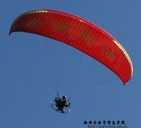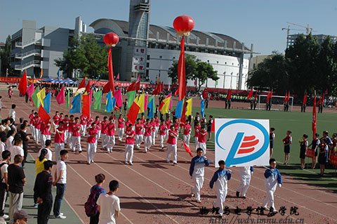 2013年5月30日8:00,我院同学在赛罕校区参加了我校第五十一届田径运动会。在热烈喜庆的开幕式方阵中,各个学院迈着整齐的步伐经过主席台,接受检阅。其中,我院以别具匠心的彩旗队和创意个性的滑翔伞掀动了整场的高潮,队员们昂首阔步,意气风发,尽情挥洒着青春活力,嘹亮的口号响彻云霄,赢得了现场师生们的声声赞叹,同时也展现出了我院师生团结一致的合作精神。