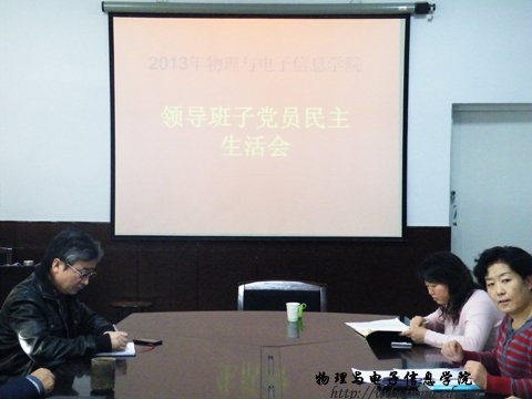 2013年3月13日下午3点我院在物理楼会议室召开“2013年yl6776永利集团领导班子党员民主生活会”会议,会议由党总支书记阿梅老师主持。出席会议的有校党办的龙艳老师、院长特古斯教授、副院长吉日嘎拉老师、副院长刘美玲老师、党总支副书记何小龙老师,以及学院各环节干部。