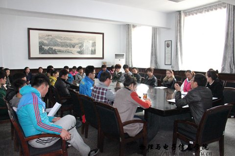 在第五十一届校运动会到来之际,为充分调动运动员的积极性,同时保障训练期间各项服务的有序进行。2013年4月10日中午,我院在物理楼会议室顺利召开运动员动员大会。党总支副书记何小龙,团总支萨其尔、学工办侯爱玲、呼和以及参加运动会的教练、运动员出席了本次会议。会议由萨其尔主持。