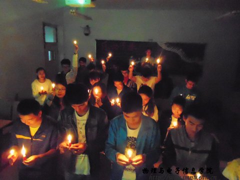 习近平同志指出:“实现中华民族伟大复兴,就是中华民族近代以来最伟大的梦想”。作为新一代大学生,如何响应党的号召,积极投身于中国特色社会主义伟大事业中去实现中国梦?就让我们从力所能及的事情做起,在5月8日,我院大一学生在晚上7点半开始有组织性的为雅安祈福,为四川的同胞们祈祷。