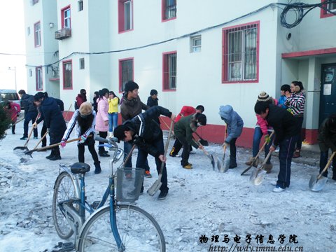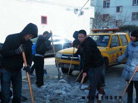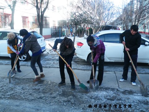 为方便我校教职工及其家属的出行,实践雷锋精神,我院于2012年11月22日在永利官网家属楼组织学生会志愿者开展冬季“破冰”活动。