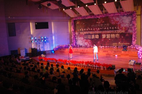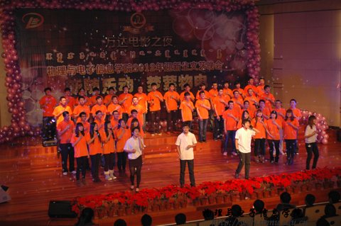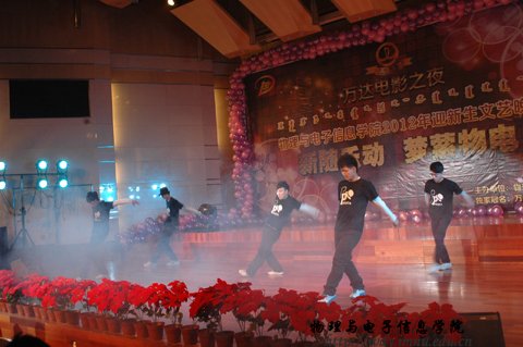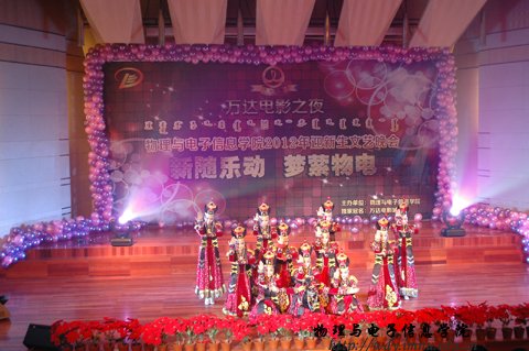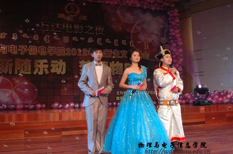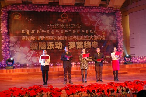 2012年11月18日,我院在逸夫楼音乐厅成功举办了“新随乐动,梦萦物电”2012级迎新生文艺晚会。参加此次晚会的领导有物电院党总支书记阿梅老师、院长特古斯教授、副院长刘美玲老师、党总支副书记何小龙老师、以及赞助商代表、团总支学工办老师、各班班主任。
