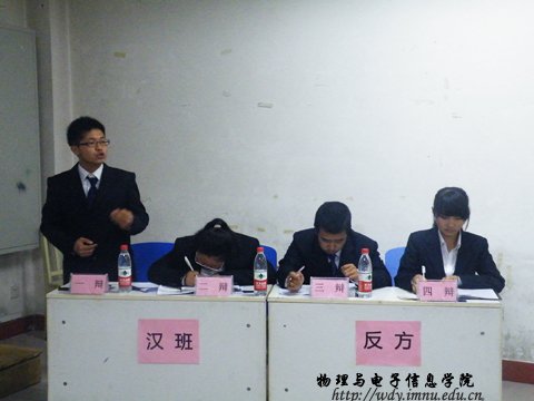 正方工程一班与反方物理汉班的八位辩手对关于“网络使人疏远还是亲近”展开辩论。比赛开始后,双方开场陈词,一辩精彩的发言成功调动了整场气氛,据理力争,精彩迭现,在攻辩阶段和自由辩论阶段,辩手有针对性的反驳对方观点,提出网络对人际关系的影响及实例,也不乏引经据典,多方论证。辩手们滔滔不绝,不相上下,将全场气氛推向高潮,辩论赛在四辩的总结陈词中进入尾声,最后各班级还进行了才艺表演,物理汉班荣获本场辩论赛的胜利。