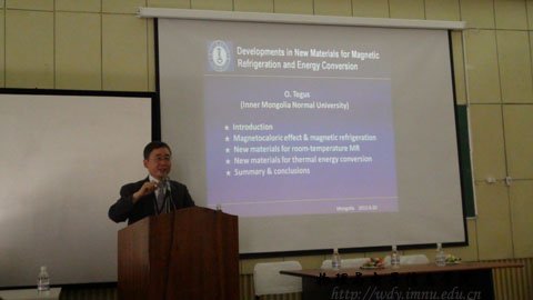 2012年8月20日,我院特古斯教授、赵凤岐教授等一行参加在乌兰巴托举行的国际材料科学会议。特古斯教授在会议上作了关于磁制冷材料方面的学术报告,并与各国学者就有关问题进行交流。同时参观访问蒙古国立大学,与国立大学校长进行座谈。双方都表示永利官网和国立大学一直保持了很好的合作关系,希望进一步加强双方师生交流,加深科研领域合作。