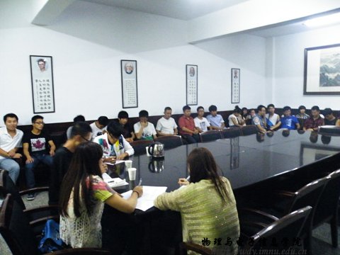 2012年8月27日晚上8:00,我院在物理楼会议室举办了院庆志愿者招募面试。学生会负责人担任此次面试评委。我院2010级和2011级近100多名学生参加了此次面试。