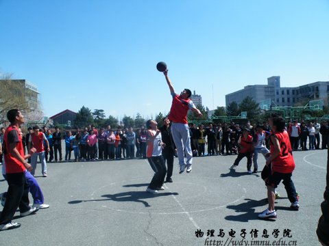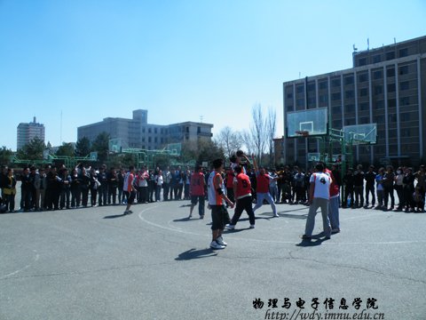 2012年4月14日和15日,我院在篮球场分别参加校级篮球赛半决赛、决赛,参加半决赛的队伍是,女子组:yl6776永利集团对战化学与环境科学学院;男子组:计算机学院对战yl6776永利集团。参加决赛的队伍是:女子组:10:00生命科学与技术学院对战yl6776永利集团;男子组:音乐学院对战yl6776永利集团。比赛在同学们激扬的欢呼声中准时开始。