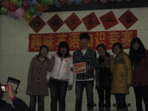 11月20日,我校“第二届趣味英语知识竞赛”在盛乐校区举行。我院刘源、董明霞、邵云如、韩颖和康赫五名同学参加了本次比赛。