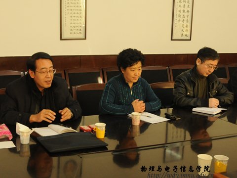 2012年2月12日下午,校党委委员、副校长云国宏教授,校党委组织部李向东部长莅临学院宣布干部任免决定,学院领导、各系、中心主任及部分老师代表参加会议。会议由物电院党总支书记阿梅老师主持。