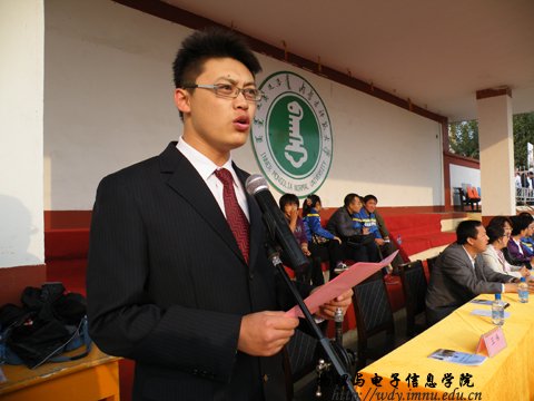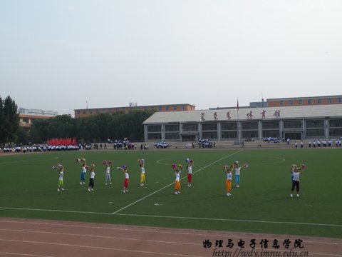 9月27日上午8:00,我院在西操场隆重举办第23届田径运动会。党总支书记阿梅老师,副院长刘美玲老师,党总支副书记何小龙老师,自治区功能材料物理与化学重点实验室主任特古斯教授,办公室主任斯琴高娃老师,物理系副主任那日苏老师,电子系主任梁学军老师,创新实验室主任曹永军老师,团总支萨其尔老师等院领导以及各班级班主任出席了运动会开幕式,并与全院师生一起观看了比赛。运动会开幕式由学工办王伟老师主持。