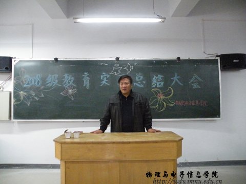 11月3日下午3点,我院在信息楼四共举办了2008级物理系教育实习总结大会。学院副院长吉日嘎拉老师、物理系主任张敏老师、副主任那日苏老师以及物理系孙咏萍、朝克夫老师出席了本次会议。会议由副院长吉日嘎拉老师主持。