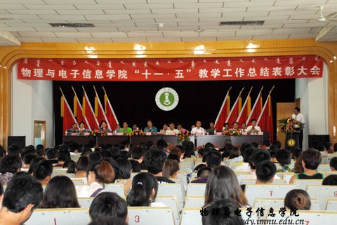 7月14日下午,我院在生物楼报告厅隆重召开 “十一 • 五”教学工作总结表彰大会。副校长照日格图教授,教务处处长王来喜教授,研究生院副院长穆城利老师,计算机与信息工程学院党总支书记辛智俊老师应邀出席了本次大会,学院全体领导、教职工、以及研究生本科生近五百人参加了大会。会议由副院长吉日嘎拉老师主持。 会上,由院长张伟教授代表学院做“十一 • 五”教学工作总结报告,报告从教学管理制度建设、质量保障与监控体系建设、师资队伍建设、实验室建设、教材建设、教风与学风建设、实践创新文化氛围营造、实习实践基地建设以及研究生教育等十个方面回顾和总结了学院在 “十一 • 五”期间教学工作取得的成绩和经验,并表彰奖励多年来辛勤耕耘、努力工作、锐意改革,在教学与管理一线做出突出成绩的教职员工:分别授予松林等14位同志“教学成就奖”,授予斯琴巴特尔等5位同志“蒙语教学先进个人” 荣誉称号,授予刘淑琴等14位同志“教学骨干奖”,授予张丽娜等3位同志“教坛新秀奖”,授予斯琴高娃等6位同志“教育管理先进个人” 荣誉称号,同时,还表彰奖励学风建设先进班集体与先进个人。颁奖仪式后,获奖教师代表和学生代表相继发言。 照日格图副校长代表学校对本次大会的胜利召开表示祝贺,对获奖的教师,同学进行了勉励,并肯定了学院在“十一 • 五”期间教学工作取得的成就,还对“十二 • 五”教学工作进行指导并寄予厚望。 在这承前启后、继往开来的2011年,学院隆重召开“十一 • 五”教学工作总结表彰大会,为学院“十二 • 五”教学工作营造开局之势,我们坚信,“十二 • 五”期间我院教学工作必将再上一个新台阶,人才培养质量再创一个新水平。