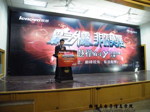 4月26日19:00联想集团在生物楼报告厅召开“霸气外露,非你莫属”--2011联想idear彪悍的小y营销创意大赛校园宣讲会。本次宣讲会由永利官网联想idear精英汇第一届会长我院08工程4班赵鹏同学主持。参加本次宣讲会的嘉宾、领导有:联想集团晋蒙分区消费业务处业务经理王翠敏,联想集团晋蒙分区商用业务处业务经理任胜龙,联想集团晋蒙分区消费业务处品牌经理于磊,yl6776永利集团党总支副书记兼副院长辛智俊老师,yl6776永利集团团总支书记何小龙老师,盛乐校区管委会张伟老师。