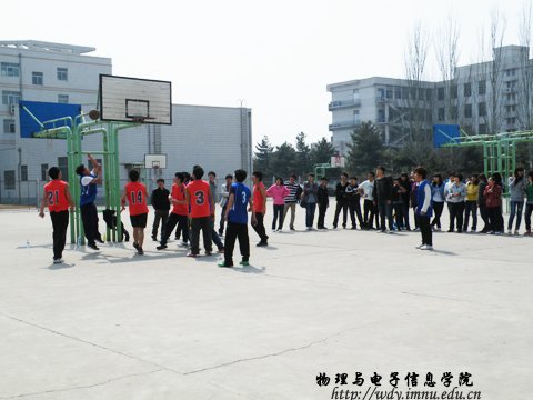 3月31日中午12:20,由学院学生会体育部组织的班级篮球友谊赛在东篮球场进行第三场初赛,比赛G组是08汉对战08工二,H组是09汉对战08工一,I组是09工一对战10工三。