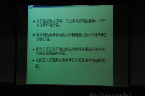 11月25日下午,我院周炳卿教授在学院会议室为师生作了题为《基于硅晶体太阳能电池研究》的学术报告。教师及研究生50余人参加了报告会。 报告中,周炳卿教授首先从新能源角度介绍了当前光电子领域的发展趋势和低能耗为标志的绿色环保方向发展,并分析了硅基太阳能电池提高效率和降低成本的途径,指出太阳能电池由于具有光电转换效率高,制作工艺简单,成本低等特点,是一种应用广泛的新型太阳能电池。他还结合自己的研究成果,对太阳能电池的发展前景进行了展望。报告结束后,周教授还与师生们就有关问题进行了深入的探讨与交流。
