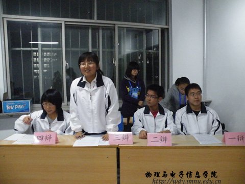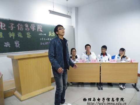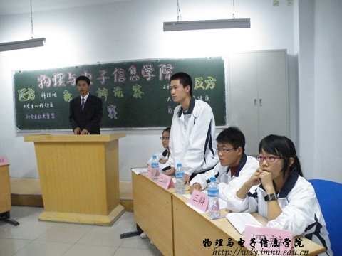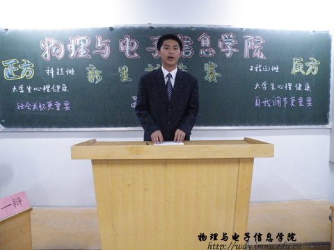 2010年11月02日晚7:00,第十五届“心理健康”宣传月之心理健康主题辩论赛总决赛在田楼126室隆重举行。我院团总支助理赵鹏、学生会主席黄瑛、副主席文成及近100名学生观看了辩论赛。