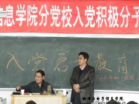 2010年11月11日下午3:00,在田七共,我院第四期分党校入党积极分子培训班开课。我们邀请到法政学院的阿民布和教授主讲本次党课,阿民布和教授以“入党启蒙教育”为题对全体学员进行了深入的讲解。他强调:入党是影响人一生的重大决定,要用科学的方法学习为什么要入党,不能只从“有用”的角度考虑,要端正入党动机,要了解党的指导思想,了解其根本是辨证唯物论和历史唯物论,要在科学上建立正确的态度和认识。