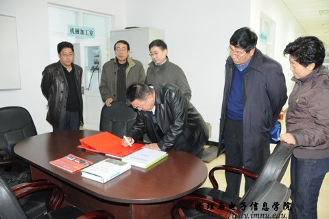 2010年11月16日上午,杨一江校长、照日格图副校长一行五人莅临我院检查指导工作。学院全体领导及相关部门负责人参加了汇报会,会议由张伟院长主持。 汇报会上,张伟院长、阿梅书记和特古斯副院长分别就学院近年来学科建设、永利集团、专业建设、人才培养以及实验室建设等方面开展的工作做了简要汇报,同时围绕当前面临的主要问题和困难介绍了十二五期间的工作思路及应对举措。 杨校长充分肯定了学院取得的成绩,他希望学院坚持以科学发展观为统领,多出高水平成果,并努力和生产实践相结合,走产学研相结合的发展道路,要紧密结合学校十二五规划发展需要开展专业建设、实验室建设等。他还强调指出,要切实加强学生创新精神和实践动手能力的培养,积极发动全院教职工投身教学改革和教学研究,努力打造yl6776永利集团人才培养特色,不断推进学院的进步和发展。 会后杨校长一行重点参观考察了功能材料物理与化学自治区重点实验室、学生实践与创新实验室和走廊实验。 陪同杨校长检查工作的还有:校办主任阿拉坦巴特尔、科技处处长赵明、教务科研党总支书记徐宝芳。
