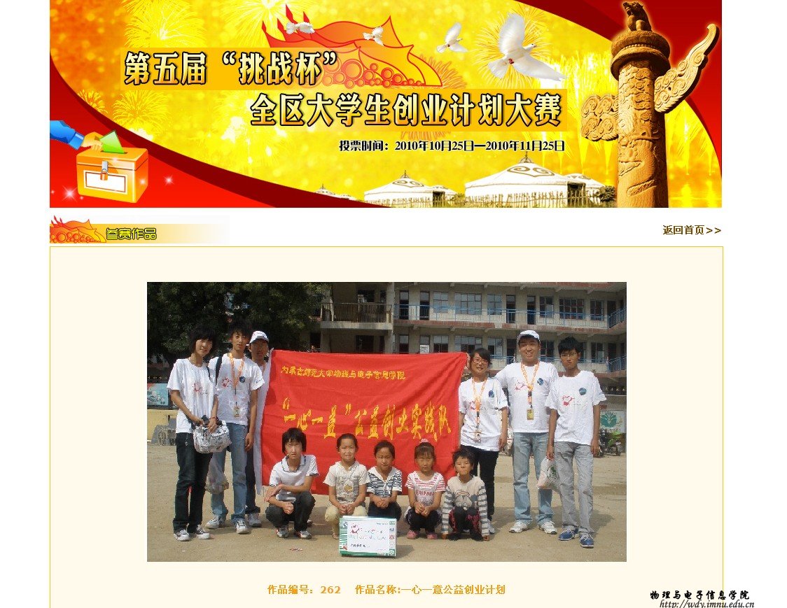 3、第五届“挑战杯”全区大学生创业计划竞赛《“一心一意”公益创业计划》介绍http://vote.mocartoon.com/nmvote/intro2.action?id=262