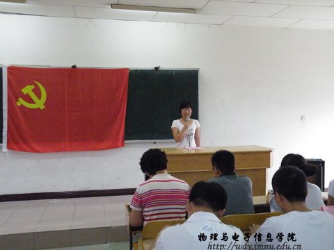 大会在庄严的《国歌》声中开始,176名新党员面向党旗肃立,表达了对中国共产党的崇高敬意。全体新党员面对党旗庄严宣誓,表达了自己将认真履行党员义务以及为共产主义奋斗终身的决心!随后,老党员为新党发放了中国共产党章程;07物理汉班隋文燕、07电子信息工程1班大红同志代表新老党员分别做了发言。