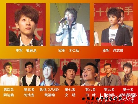 3月20日晚,我校第七届校园十佳歌手大赛赛罕校区决赛暨颁奖晚会在音乐厅举行。我院09蒙班才仁括同学荣获冠军。才仁括同学于本次大赛中在500名参赛选手中脱颖而出。才仁括同学不仅展示了自己、也向全校师生展现了yl6776永利集团的风采。