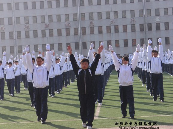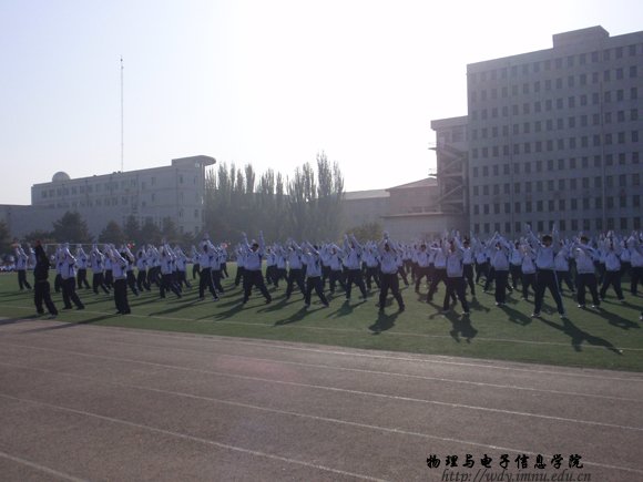 10月25日上午,在东操场举办新生广播操比赛中,各学院展示了自己的风采。我院09级新生经过将近半个月的训练,最终在比赛中取得第五名的成绩。