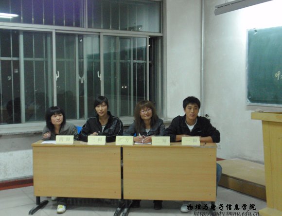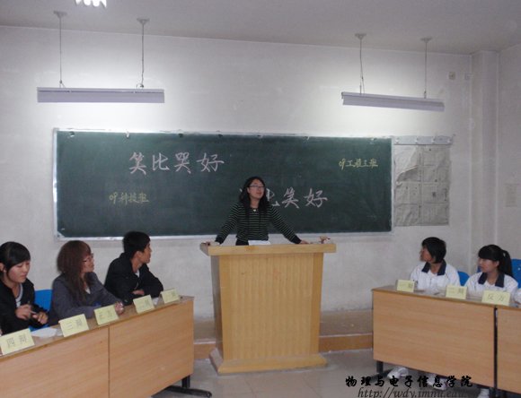 10月17日晚7:30,在田楼126进行了第三场比赛,正方为09科技班,题目为笑比哭好,反方为09工程3班,题目哭比笑好。比赛当中各位辩手积极发言,唇枪舌剑。赛后,同学们表演了优美的节目,把辩论赛推向高潮。最后,09科技班获胜。18日将进行09工程1班和09物理蒙班蒙语组的比赛,敬请关注。