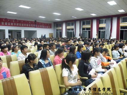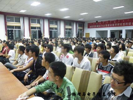 9月17日晚7点30分,我院09级新生在生物楼报告厅听取了爱国主义专题讲座.会上,满时新老师对新生们进行了爱国主义教育,激励了大家的爱国主义情怀.通过这次专题讲座,学生们更加深入的了解了爱国主义精神,并使爱国主义理念深入人心.