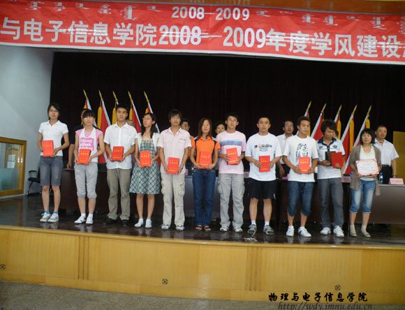 会上,颁发了08-09年度yl6776永利集团“科技活动优秀指导教师”、“优秀学生干部”、“学风建设标兵”、“文体特长”、“星级宿舍”、“内务标兵”、“优秀学生党员”、“先进班集体”等奖项,另外,还为今年考取武汉大学博士研究生、我区首位赴北极科考的06级研究生刘建军同学颁发了“特殊贡献奖”。