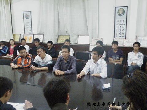 下午4时,学生会在院会议室召开了主题为“发明直通专利,大学生实践创新”的欢迎会。我院学生会社团部部长包文君主持会议,会上,2005级电子信息工程班崔晓宇与张帅分别介绍了他们在08年学术科技文化月活动中获奖的作品:《多点温度控制技术》与《全自动洗衣机的自动控制》。农大机电学院曾多次申报成功国家专利的王懋同学也就自己的发明经历及对发明与申报专利的细节做了详细的介绍,双方同学也就各自的疑问进行了讨论,现场气氛十分热烈。在这里没有校际间的区别,没有院系间的区别,联系你我的只有对知识的渴望,对创新的灵感。最后我院学生会主席赵佳哲对未来两校间的学生科技创新活动提出了长久联系的期望,她希望我们在知识的指引下共同走向成功的明天。会后两校的同学交换了电话,以便将来在合作方面相互帮助。