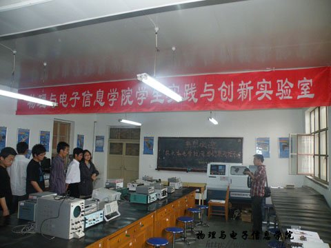 随后,两院四十余名学生步入师大yl6776永利集团实践与创新实验室,实验室墙上悬挂着学术科技月活动的获奖作品图片及文字简介,并配有实物展示。实验室负责人蓝荣与与彭鹏为大家详细的介绍了实验室功能、设备仪器及其使用情况,并着重介绍了我院学生申报国家专利的发明类科技创新作品。实践与创新实验室成立于2004年,旨在培养学生创新能力,为爱好电子设计、制作、创新的同学提供一个实现梦想的自由舞台。农大校友对这间普通又不平凡的实验室充满了无限的好奇,里面包含的是数目繁多、一应俱全的实验基础工具,在这里,无数思维活跃的同学将一个个鲜活的想法付诸实践,无数的科技创新梦想在这里实现。