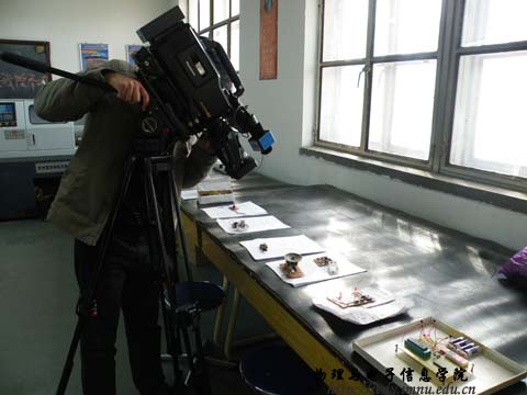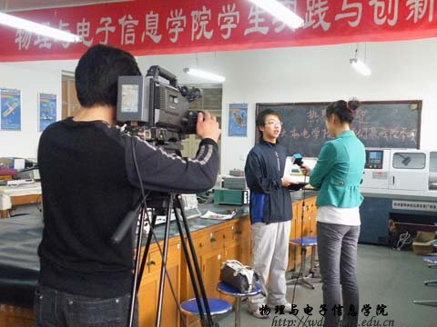 4月22日早九点,内蒙古卫视晚间报道记者来我院采访我院关于学生学术科技创新成果及义务维修活动情况。张伟老师带领学生会及科技协会成员参加采访。记者先后参观了家电维修部与yl6776永利集团创新实验室,实践与创新实验室始建于2004年,旨在为爱好电子设计与制作的同学提供一个舞台,为我们学有余力的同学提供了一个实践知识、提高动手能力的平台。赵佳哲、杨桂全、包文君、彭鹏分别介绍了此次学术科技创新活动获奖成果,记者也对实验室的陈列项目产生了浓厚的兴趣。大家被科技的魅力深深吸引着以至于一个小时的时间不知不觉过去了,我们相信在全体师生的努力下,我院学生的学术科技创新成果一定会加辉煌!