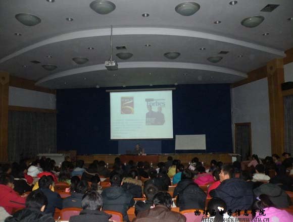 本次讲座主要讲述了作为国际奥委会全球合作伙伴的联想集团的创业史,发展史,以及一直支持着联想从一个名不见经传的小厂发展成为全球个人电脑市场的领导企业的“认真、严格、主动、高效”的企业亲情文化。吴敌先生还对大学生未来的就业方向作了指导。随后联想集团进行了有奖问答,并对同学们提出的问题进行了回答。