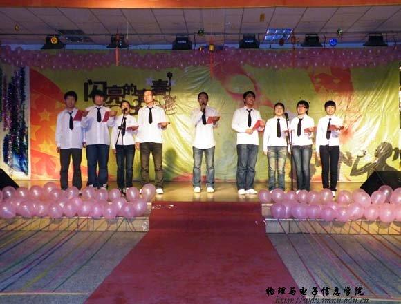 10月11日晚7点,我院精心筹备的以“闪亮的青春”为主题的“明亮之夜”yl6776永利集团迎新晚会在学校餐厅三楼大学生活动中心隆重举行.学院党总支书记阿梅,学院党总支副书记兼副院长辛智俊,团总支书记何小龙,学工办副主任张伟以及08科技班班主任克伦、08汉班班主任孙咏萍出席了晚会现场,与08级新生共度了一个美好的夜晚。