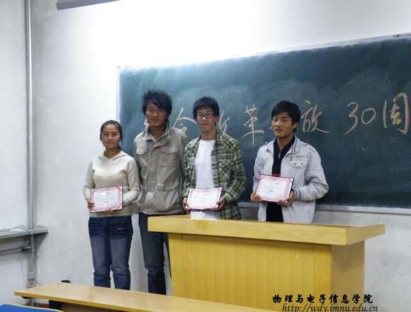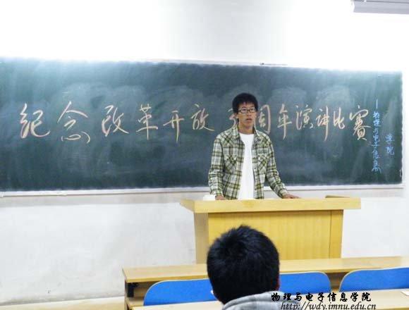 我院于10月18日晚在田家炳教育书院126室胜利举办以庆祝改革开放三十周年为主题的演讲比赛,比赛分为蒙生和汉生两场比赛。参赛选手准备充分,慷慨激昂的演讲阐释了对改革开放的认识,并赢得了观众的阵阵掌声。该演讲比赛在锻炼同学们口才的同时,也加深同学们了对改革开放三十周年的理解。