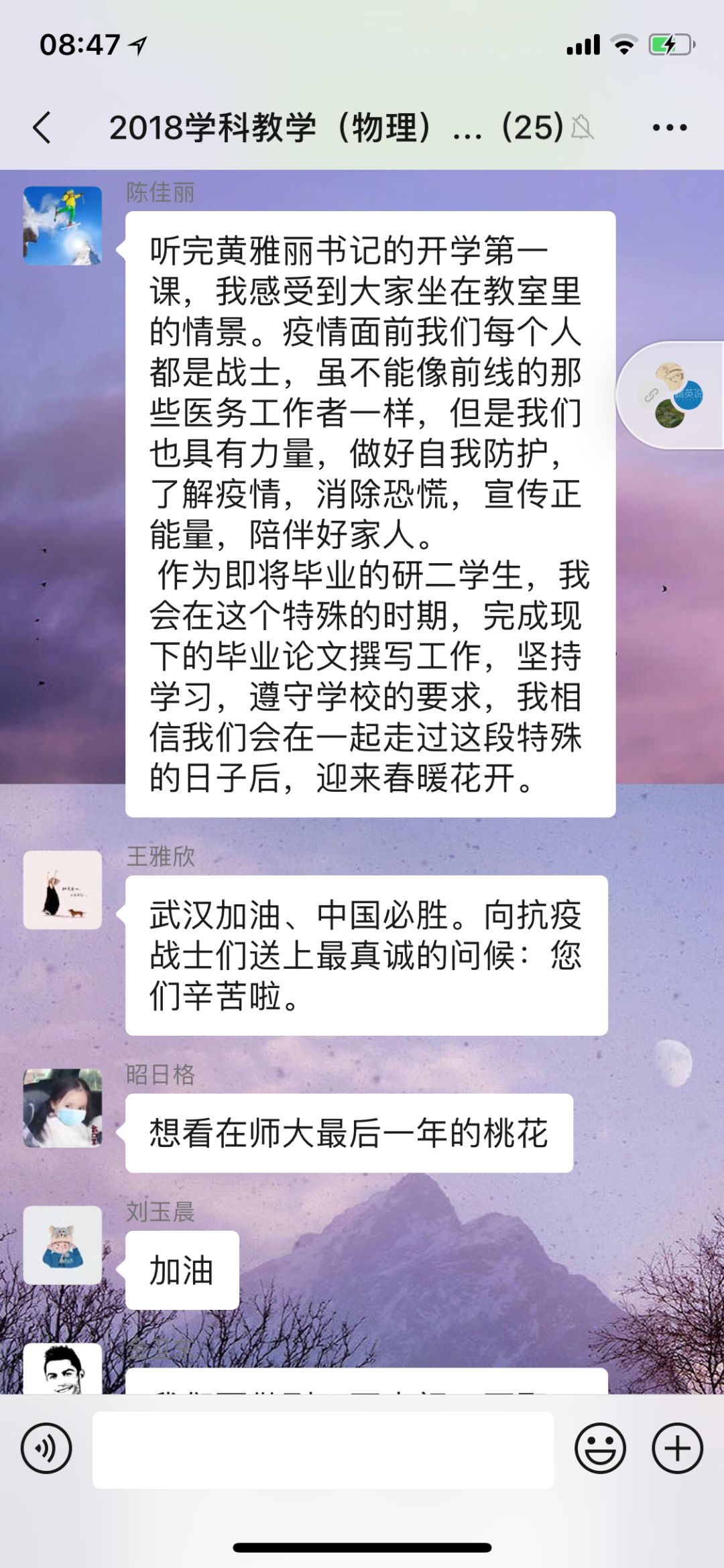 物电院的学子们分布在祖国的五湖四海,却又因为同一个契机云相聚在这开学第一课的现场。我们隔离病毒,但不隔离爱,这个独特的开学第一课让我们感受到了爱与信心。