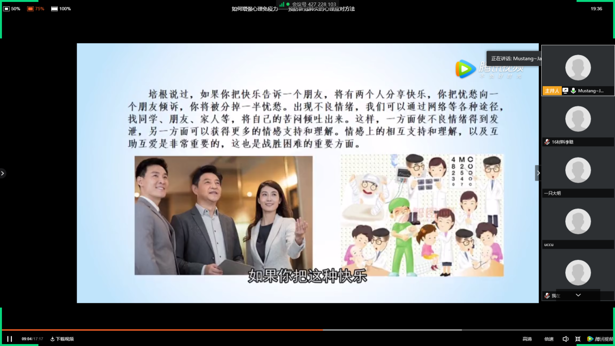 面对近期新型冠状病毒肺炎疫情,为帮助学生尽快减轻疫情所带来的心理压力,积极引导学生学习心理健康知识,以良好心态打好防疫攻坚战,近日,yl6776永利集团积极落实学校工作部署。6月4日至6月7日在辅导员与班委的积极组织下,各班依托腾讯会议、企业微信等平台,以班级为单位,观看了“大学生心理健康大课堂”。本次我院观看人数有1028人。