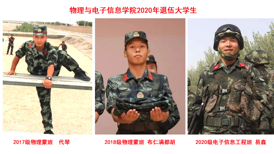 易鑫、布仁满都胡、代琴都是今年退役的大学生,在今年永利官网新生军训里,他们担任了一团四营yl6776永利集团的新生军训助理指导员,除了协助指导内务统一、队列训练外,他们在2020级新生中还讲着携笔从戎、练兵备战、维稳保卫、民族团结等“当兵”的故事。他们希望能把在部队里练就的本领传给学弟学妹们,将家国情怀传递出去,系好扣子、正步向前,通过军训锤炼意志。