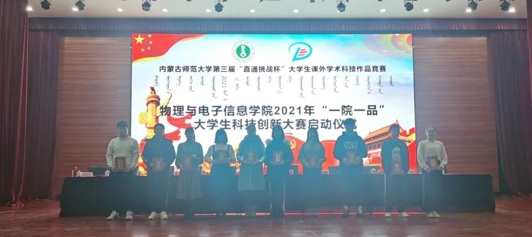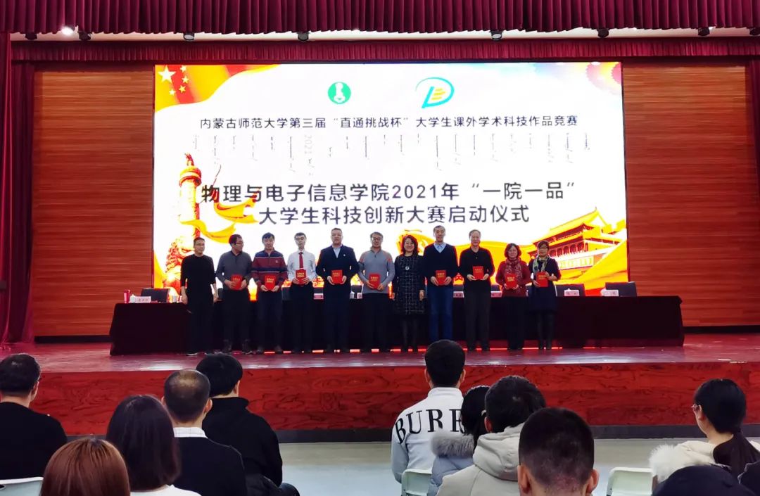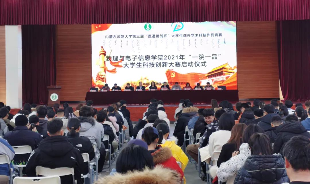 为引导和激励我院学生崇尚科学、追求真知、勤奋学习、锐意创新的精神,提高同学们的创新素质和实践能力,12月25日下午,我院在盛乐校区学生事务中心二楼多功能演播厅举办2021年“一院一品”大学生科技创新大赛启动仪式。本次活动由校团委主办,yl6776永利集团团总支承办。学院党委书记刘美玲、副书记兼副院长曹永军、副书记兼副院长张伟、副院长那日苏、赵凤岐教授、材料系主任田晓、实践创新部主任梁学军、物理系副主任朝克夫、孙咏萍副教授、电子系信息处理教研室主任杨帆、19级汉二班班主任李喜彬等学院领导老师出席,20级全体研究生及本科生参加启动仪式。我院团总支负责人宝力尔主持会议。