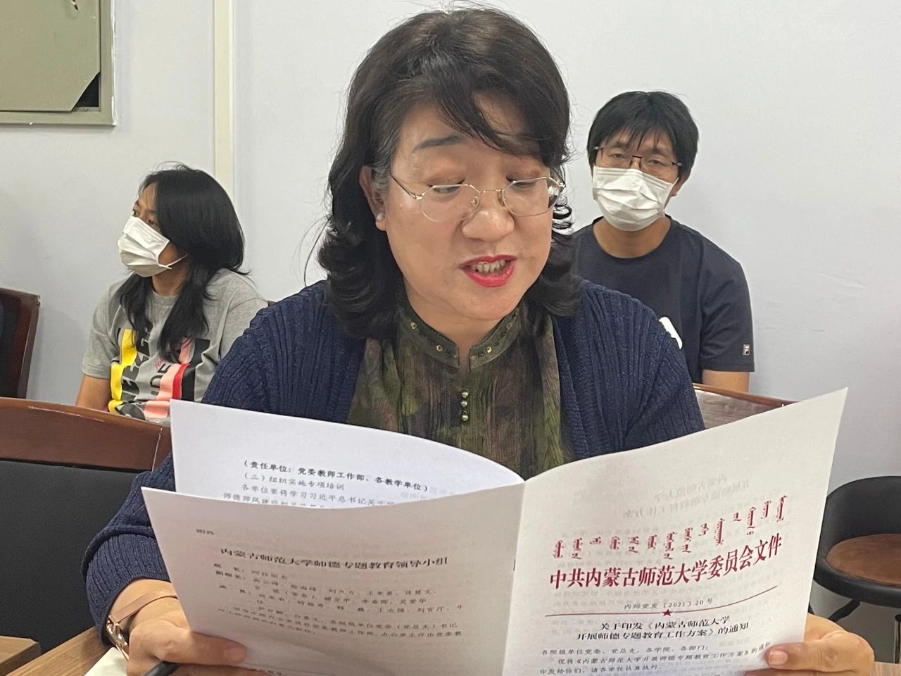 会议第二项,由我院党委书记刘美玲领学师德师风建设学习。刘书记从目标任务、总体要求、教育内容、工作安排及工作要求等方面传达《永利官网开展师德专题教育工作方案》,之后对《永利官网教师师德师风建设学习手册(第一版)》、《师德警示教育(一)——违反高校教师职业行为十项准则典型案例》进行领读学习。