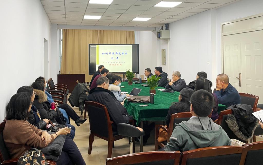 王喜贵教授从认证背景、师范认证指标、认证工作准备、认证理念、认证标准、如何开展认证、课程与教学指标等七个方面,阐述师范类专业认证的任务与要求。通过案例分享的形式介绍师范专业认证、自评报告撰写、专家进校考察等过程中所需要做的工作,针对部分教师提出的问题进行深入交流、探讨。他强调,师范认证必须与一流本科专业建设、一流课程建设、课程思政建设以及质量考核评估等工作,同向同行,密切结合。