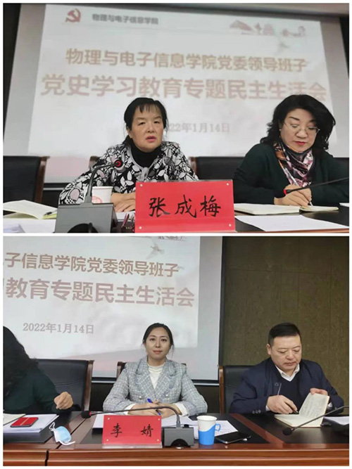 按照校党委部署和要求,经校党委党史学习教育巡回指导组审核批准,1月14日上午,yl6776永利集团党委领导班子在赛罕校区文史楼1号会议室召开党史学习教育专题民主生活会。校党委党史学习教育巡回指导组张成梅、李婧到会指导。yl6776永利集团党委书记刘美玲主持会议,学院党委领导班子全体成员参加会议。
