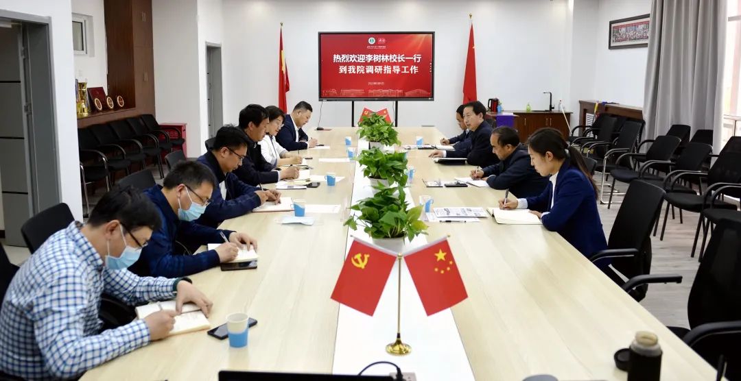党委书记刘美玲致欢迎辞,对李校长一行深入学院调研指导表示热烈的欢迎。曹永军院长从学院发展现状、亮点工作、存在问题以及工作思路四个方面向各位领导做了汇报,介绍了学院的基本情况、学科建设、专业建设、师资队伍建设、科学研究、学院目前面临的困难及今后的工作重点。